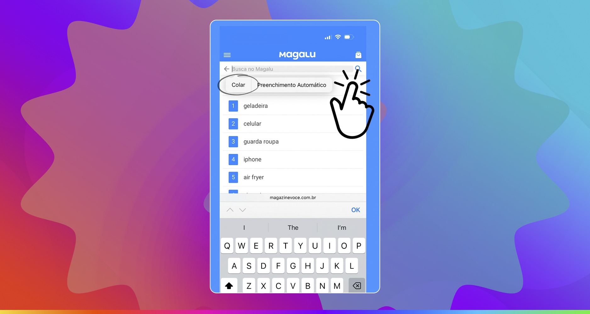 Vá até a barra de pesquisa da sua loja digital e cole o código.