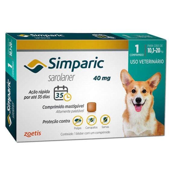 Antipulgas e carrapatos para cães simparic de 10,1 a 20kg - zoetis