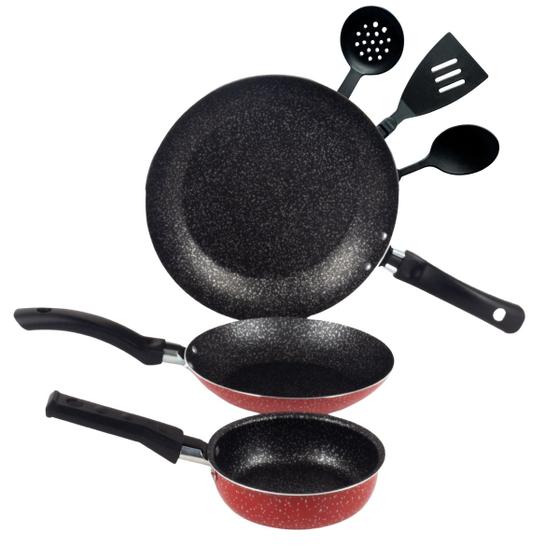 Jogo de Frigideiras e Espátulas 6 Peças Vermelho Nacional - Alumínio Nacional