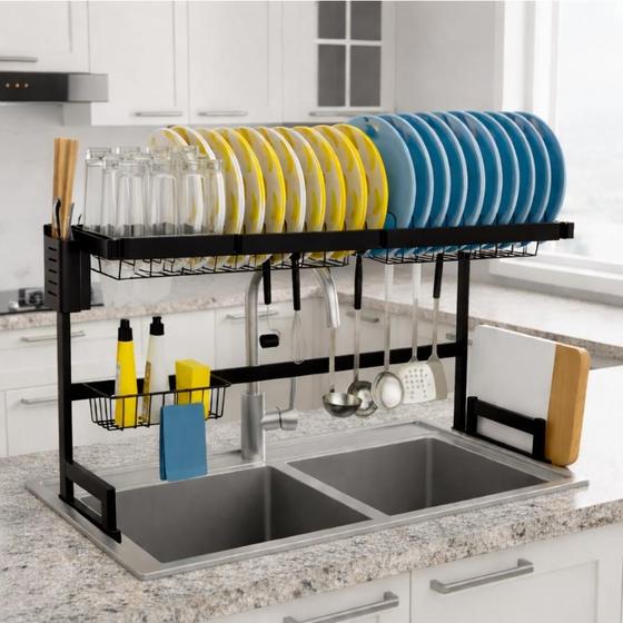 Economiza espaço na pia e deixa a cozinha mais organizada.