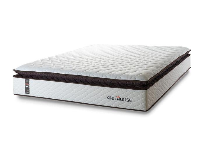 Feito com os mais nobres materiais em sua composição, ele conta com espuma D33 . O colchão King House acomoda melhor o contorno do corpo, dispondo de forma correta quadris e ombros, expulsando as dores e problemas de coluna.