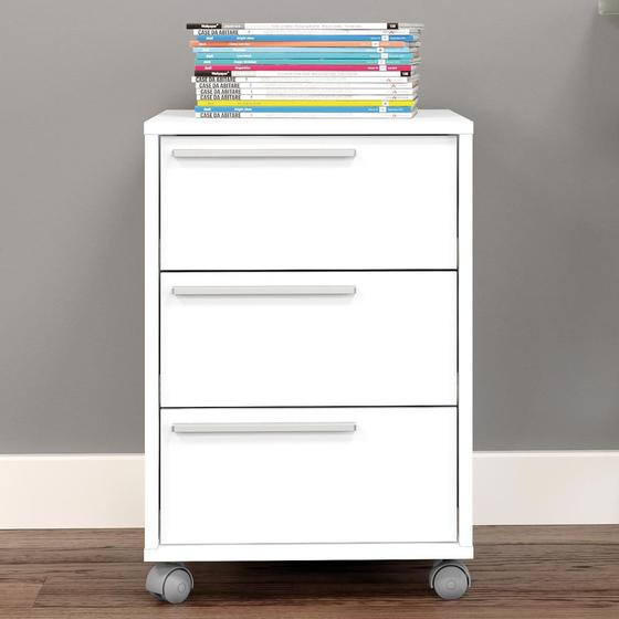 no PixGaveteiro com Rodízios Maia 3 Gavetas Branco - Politorno