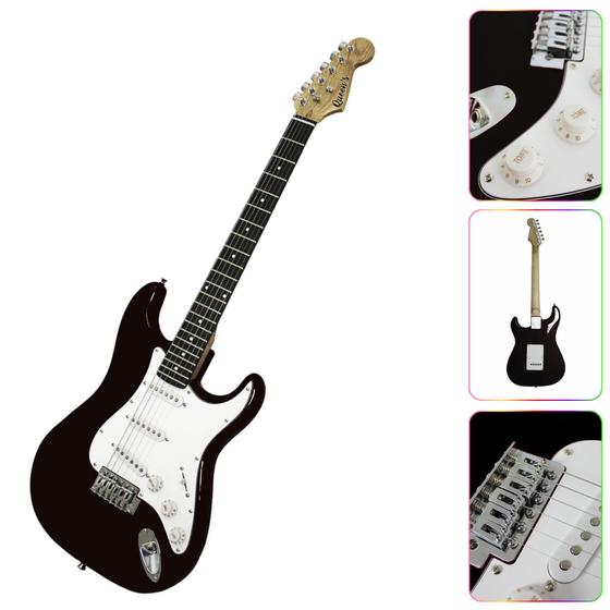 Guitarra Elétrica Preta e Branca Descubra o Poder da Música com Este Instrumento ImpressionanteO modelo stratocaster com 3 captadores single coil com chave seletora de 5 posições onde você pode escolher os tipos de timbres da sua guitarra sendo (grave, grave médio, médio, médio agudo e agudo), a alavanca e cabo incluso também fazem parte do instrumento, tarraxas blindadas e cromadas garantem ainda mais a durabilidade e seu escudo branco da aquele toque especial.