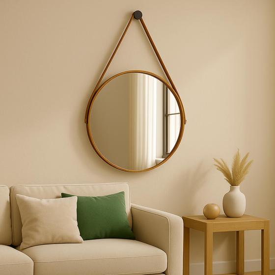 Espelho Redondo Adnet 60cm Decorativo com Alça e Suporte para Quarto Banheiro Sala - Outlet Dos Espelhos