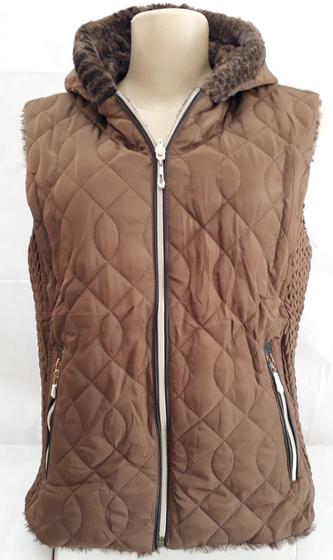 colete feminino metalasse com capuz marrom forrado veste 2 lados. outro lado estampa de onça - saeldon classc fashion