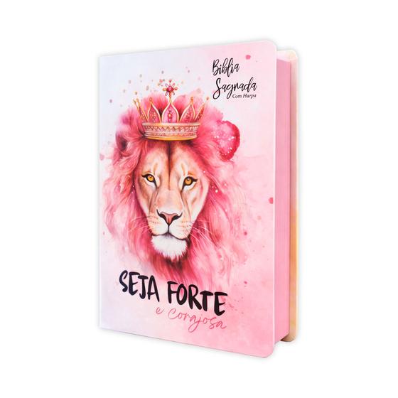 Biblia Sagrada Seja Forte e Corajosa - Palavra de Jesus em Vermelho - Capa Dura - Com Harpa.A Bíblia Sagrada Seja Forte e Corajosa é uma edição especial desenvolvida para quem busca leitura clara, organização temática e acabamento de qualidade. Com capa dura resistente e design inspirador, é ideal para uso diário, cultos, estudos bíblicos e também para presentear.