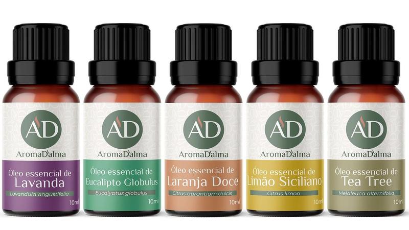 no PixKit Óleo Essêncial Completo Para Aromaterapia 100% Puros - Lavanda, Eucalipto, Limão Siciliano, Laranja Doce e Tea Tree (Melaleuca) - Aroma Dalma - Aroma D'alma