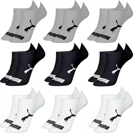 Kit 9 Pares Meias Puma Sapatilha Algodão Cano Baixo Meia Soquete Adulto Masculino Feminino Original