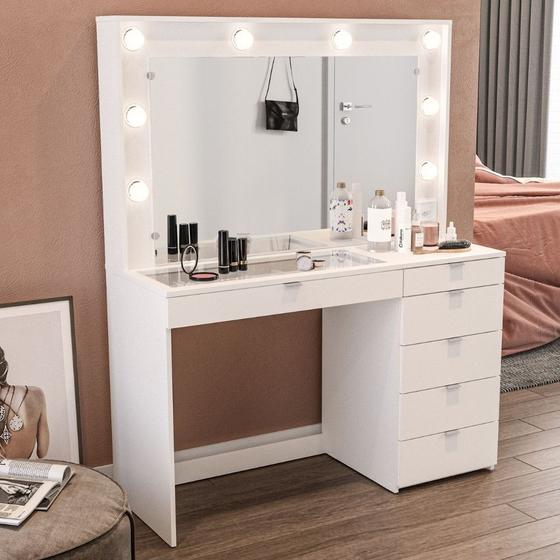 Penteadeira Camarim com Espelho e Visor de Vidro 6 Gavetas Nanda Mobikasa