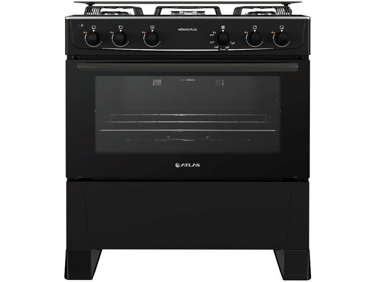 Fogão 5 Bocas Atlas Mônaco Plus Preto com Mesa Inox - Bivolt| Marca |
