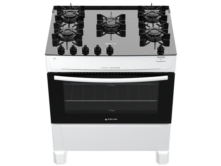 Fogão Atlas 5 Bocas com Mesa de Vidro Mônaco Top Glass Branco - Bivolt