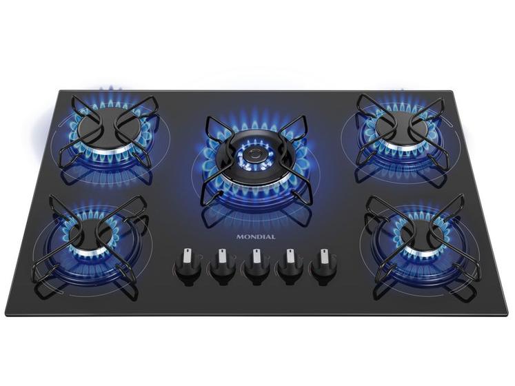 Cooktop 5 Bocas a Gás GLP Mondial Mesa de Vidro Preto Tripla Chama CTG-03| Marca |